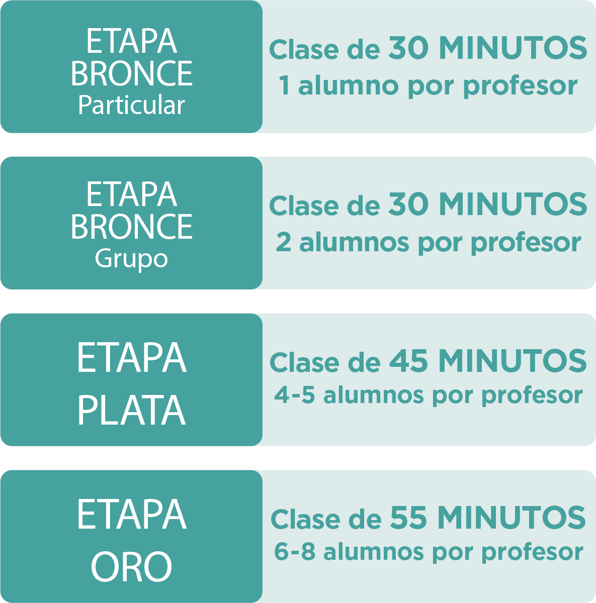 Esta etapa logra la adaptación al medio, la seguridad acuática y habilidades básicas como respiración, flotación, balance, giros y desplazamiento.